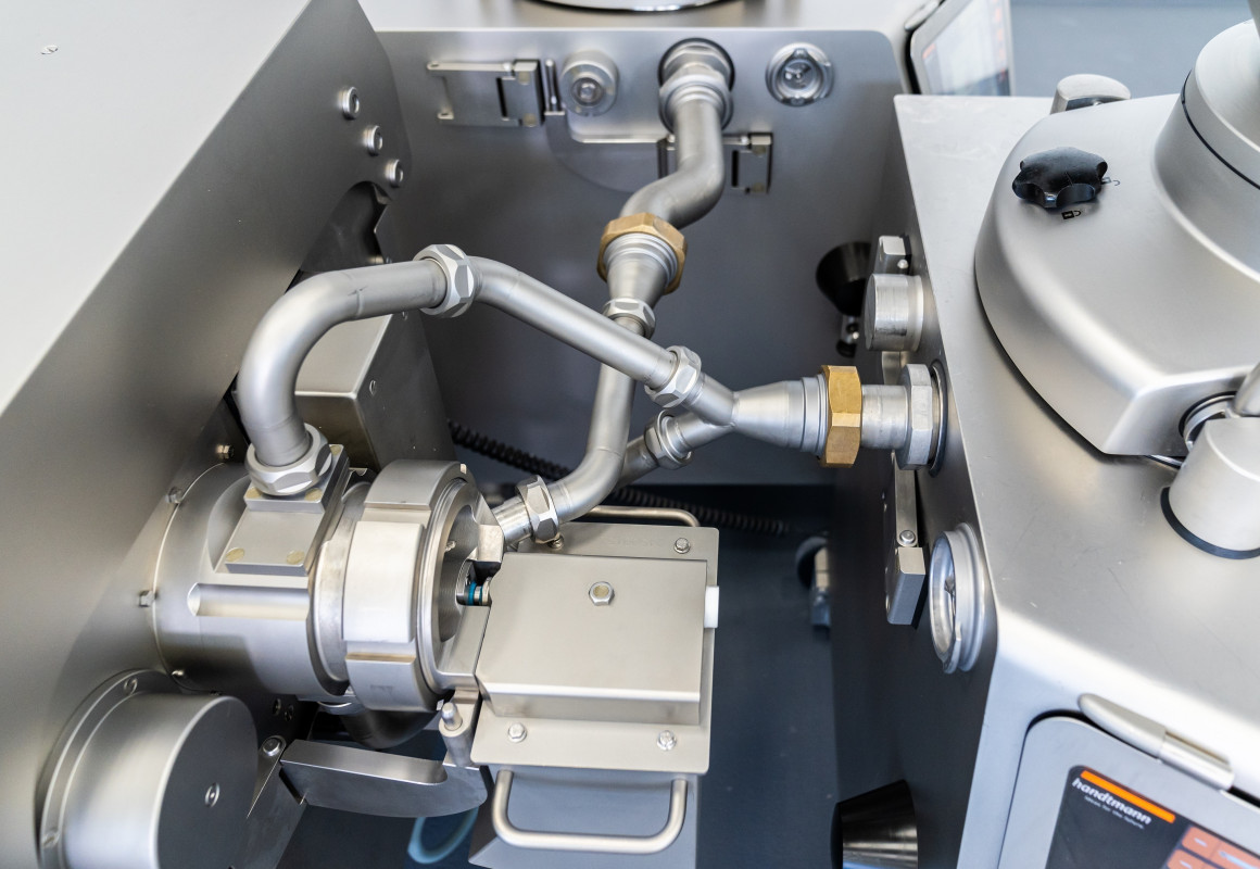Das Formsystem ist flexibel sowohl für das „Freie Formen“ als auch für „Formen und Trennen“ von Produkten aus den Lebensmittelbereichen Fleisch- und Wurstwaren, Vegetarisch und Vegan, Backwaren, Molkerei, Süßwaren, Fisch, Tiernahrung und vielen mehr geeignet. Mit der zusätzlichen Funktion der Koextrusion ist nun auch die Herstellung gefüllter Produkte in großer Vielfalt möglich. Das Form- und Schneidesystem FS 525, das zwei unterschiedliche Formprinzipien für maximale Flexibilität in der industriellen Anwendung kombiniert (Lochplatten-Formtechnik für frei geformte 3D-Produkte und Rotationsschneider für unterschiedliche Querschnitte mit glattem Schnitt) bietet nun zusätzlich die Option der Koextrusion. Dies erweitert den Anwendungsspielraum zusätzlich, um gefüllte Formprodukte mit geschlossenen oder offen Enden im Kaliber 20 - 50 mm herzustellen. Anwendungsspielraum bietet das servogesteuerte Ventil für die Innenmasse mit Ventilhülsen im Durchmesser 22/8 mm mit Ventilspitze 8 mm/Ventilöffnung 8 mm, Durchmesser 22/10 mm mit Ventilspitze 10 mm/Ventilöffnung 10 mm, Durchmesser 30/12 mm mit Ventilspitze 16 mm/Ventilöffnung 12 mm, Durchmesser 30/15 mm mit Ventilspitze 16 mm/Ventilöffnung 15 mm. Formatteilgrößen sind variabel verfügbar in den Kalibern 25, 30, 35, 40, 50, 55, 60 und 70 mm. Aufgrund von Servotechnik ist die Positionierung der Füllung immer gewichtsgenau und exakt, ob pastös, grobstückig oder weich. Eine einfache Bedienung, schnelles Rüsten sowie Montage und Demontage erlauben eine große Produktvielfalt bei schnellen Produktwechseln. Eine Produktionsleistung bis 150 Portionen pro Minute ist so einbahnig möglich. Das Form- und Schneidesystem FS 525 lässt sich perfekt in ganzheitliche Prozesse integrieren, wie zum Beispiel das Handtmann Transfersystem oder mit Automationsoptionen wie Wäge-System, Schalenbeschickung oder Einlegen in Tiefziehmaschinen synchronisieren.