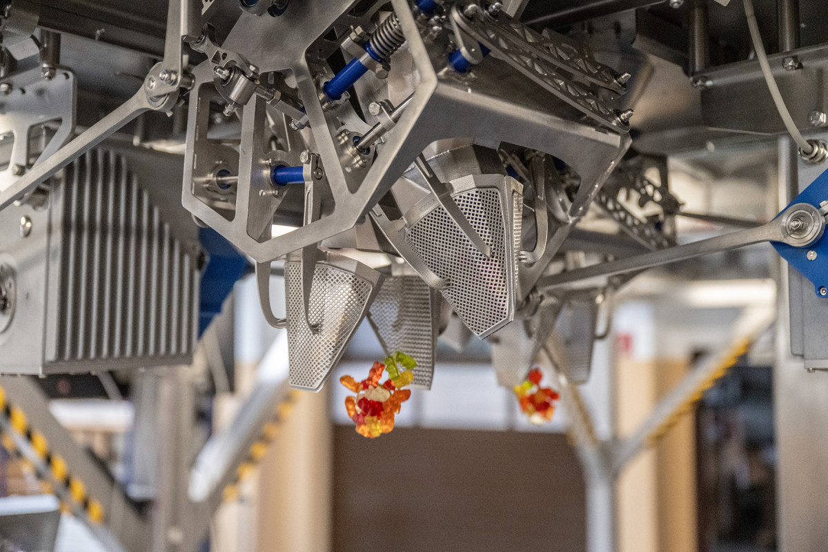 Die DDSEQ entstand in enger Zusammenarbeit mit einem führenden Süßwarenhersteller. Als kompakte Doppelklappenlösung optimiert sie die Schnittstelle zwischen Mehrkopfwaage und Verpackungsmaschine. Das Doppelklappensystem leistet bis zu 2×200 Takte pro Minute – selbst bei Nennfüllgewichten bis 200 g. Die Verpackungsmaschine kann damit erstmals das volle Potenzial der Waage ausschöpfen.