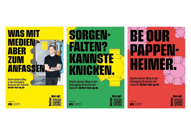 Mit der Kampagne „BETTER BOX UP!“ will der FFI das Selbstverständnis und die Attraktivität der Branche unterstreichen. Das „better“ im Claim steht dabei für die „besseren“ Perspektiven – von sicheren Arbeitsplätzen über vielfältige Entwicklungsmöglichkeiten bis hin zu realistischen Aufstiegschancen für Auszubildende, Fachkräfte und Quereinsteigende. Trotz ihrer Zukunftssicherheit und gesellschaftlichen Relevanz steht die Faltschachtel-Industrie vor einem Fachkräftemangel. Mit „BETTER BOX UP!“ begegnet der FFI dieser Herausforderung aktiv – durch authentische Einblicke in eine für viele nicht wahrgenommene, aber unverzichtbare Branche.