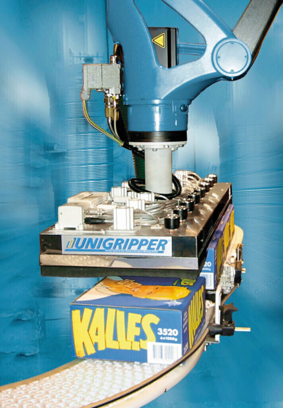 The UniGripper was developed in the mid-1990s to efficiently move glass packaging in jam production regardless of formats, fill levels or spacing. This flexibility remains the central feature of the system to this day and has been transferred to many industries.